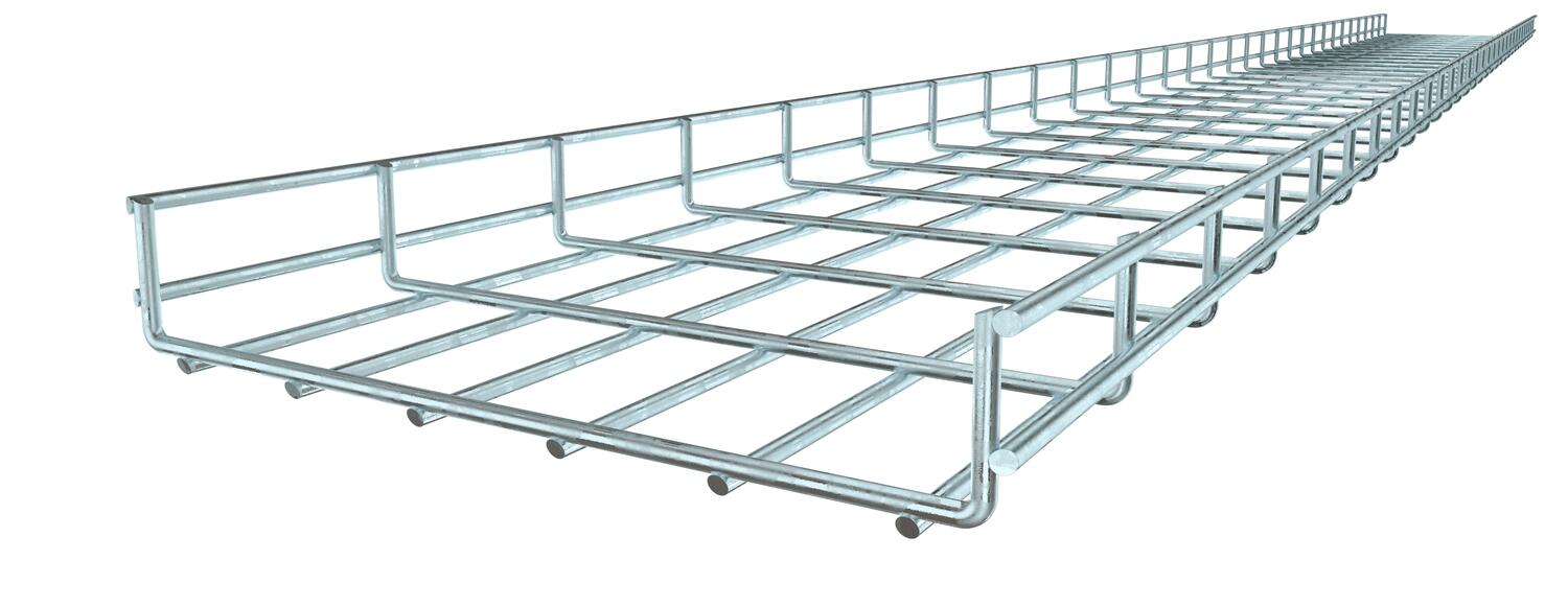 Mesh cable tray made of spot-welded steel wire of side height 55 mm.