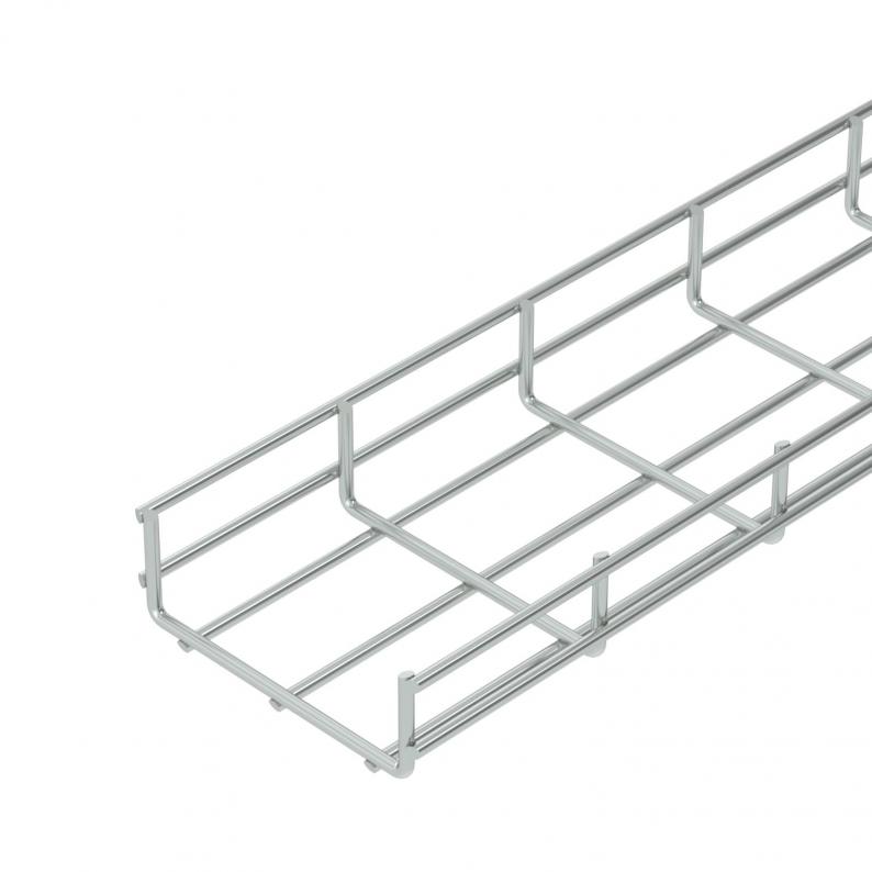 Mesh cable tray made of spot-welded steel wire of side height 55 mm.