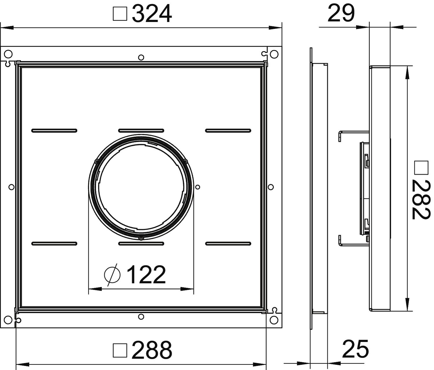 Heavy-duty frame cassette for tube body for the installation of accessories in the UZD250-3in dry or wet-care floors in interior areas Load class 2 to 20 kN. The tube body is not contained in the scope of delivery.