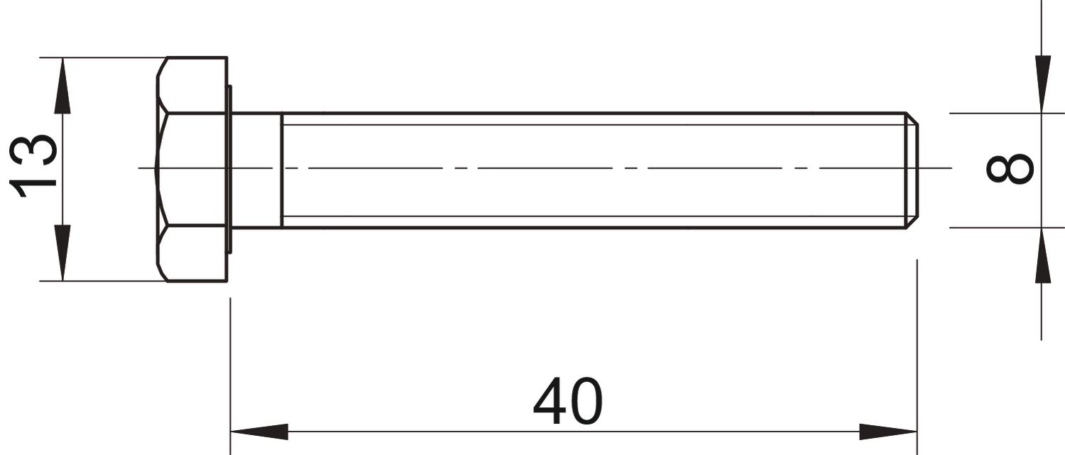 Hexagonal bolt according to DIN 933 with metric thread. Resistance grade at least 8.8.