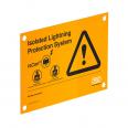 Label: "NOTE! Insulated lightning protection with the OBO isCon® system. Only a lightning protection specialist may carry out changes"