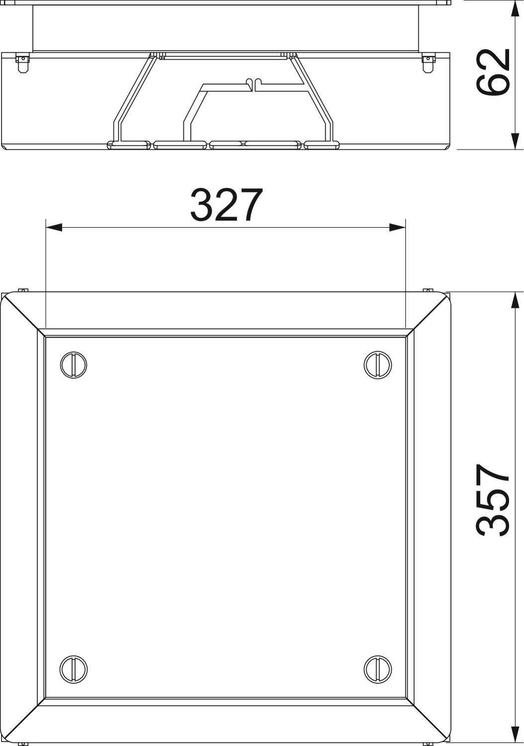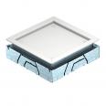 Underfloor junction box for PVC ducts in heights of 25 mm and 35 mm.