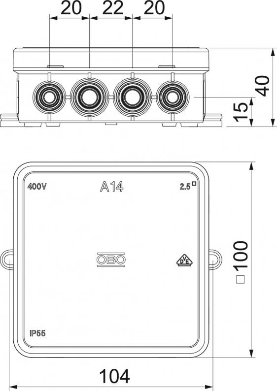 Dimensions: 100 x 100 x 40 mm