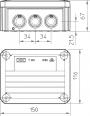 Junction box according to DIN EN 60670. Flame-resistant to DIN EN 60695/2/11, test temperature 650 °C. Impact resistance IK07 according to DIN EN 50102.