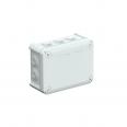 Junction box for the connection of cables and lines indoors and in protected outdoor areas. Rectangular design with plug-in seals to the sides and knock-out entries in the bottom. Suitable for wall and ceiling mounting and on mounting panels. With the option to fasten inside and to mount via the corner domes. Cover with quick lock, sealable. Made from halogen-free and UV-resistant materials.