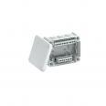 Junction box with terminal strip for the connection of cables and lines indoors and in protected outdoor areas. Rectangular design with plug-in seals to the sides and knock-out entries in the bottom. Suitable for wall and ceiling mounting and on mounting panels. With the option to fasten inside and to mount via the corner domes. Cover with quick lock, sealable. Made from halogen-free and UV-resistant materials.