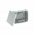 Junction box with terminal strip for the connection of cables and lines indoors and in protected outdoor areas. Rectangular design with plug-in seals to the sides and knock-out entries in the bottom. Suitable for wall and ceiling mounting and on mounting panels. With the option to fasten inside and to mount via the corner domes. Cover with quick lock, sealable. Made from halogen-free and UV-resistant materials.