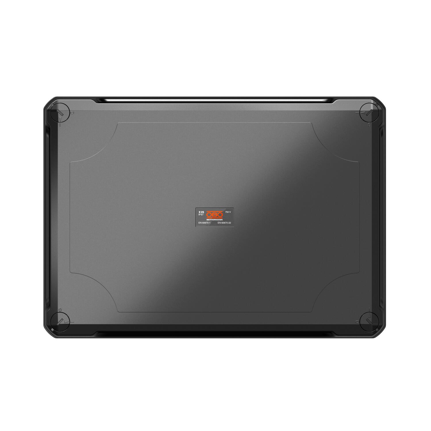 Junction box for the connection of cables and lines indoors and in outdoor areas. Rectangular design with knock-out entries. Suitable for wall and ceiling mounting with the option to fasten outside, inside or to mount via the corner domes. Particularly impact resistant with IK09. Cover with quick lock, sealable. Made from halogen-free and UV-resistant materials.