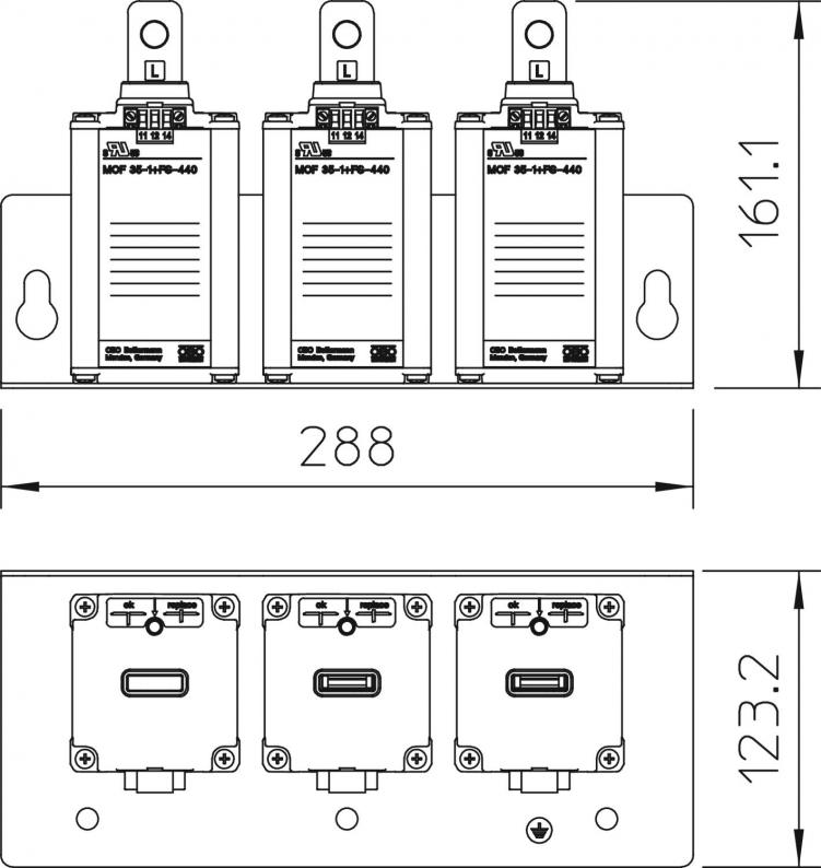• Line following current quenching 50 kAeff, arrester back-up fuse up to 400 A gL/gG