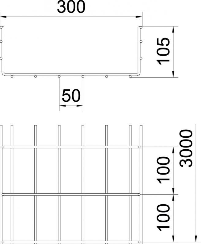 Mesh cable tray made of spot-welded steel wire of side height 105 mm.