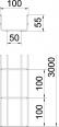 The grid dimension is 20 x 100 mm in the width 50 mm and 50 x 100 mm in the widths 100-600 mm.