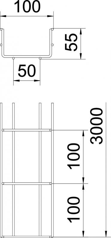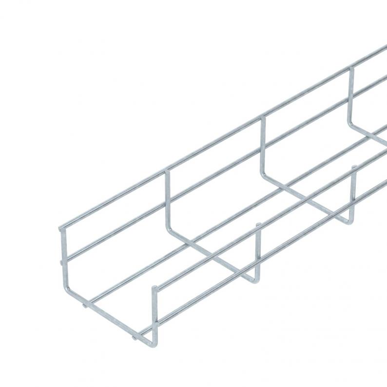 Mesh cable tray made of spot-welded steel wire of side height 55 mm.