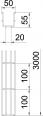 The grid dimension is 20 x 100 mm in the width 50 mm and 50 x 100 mm in the widths 100-600 mm.