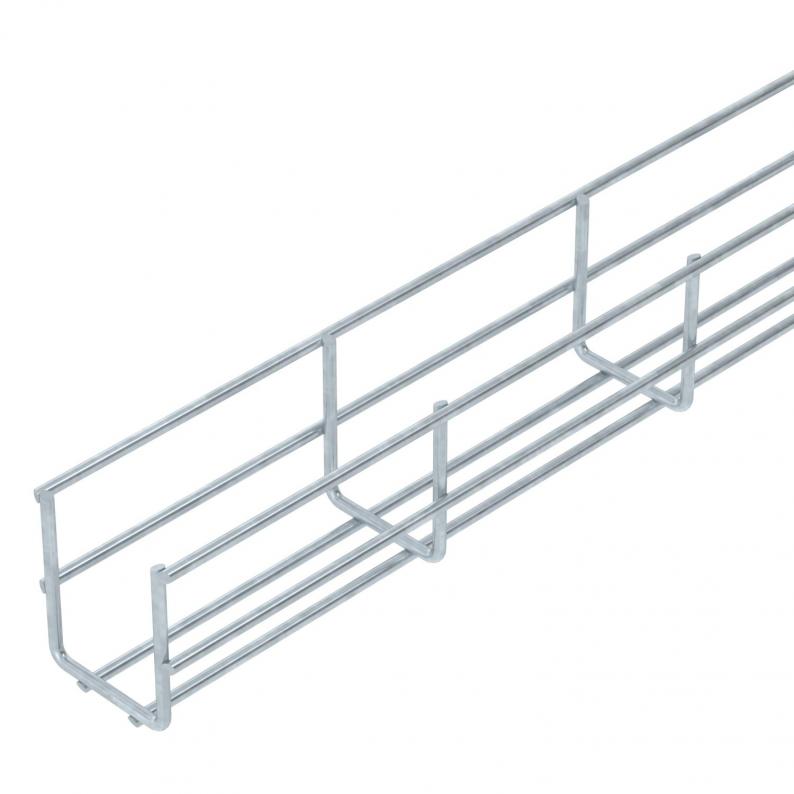 Mesh cable tray made of spot-welded steel wire of side height 55 mm.