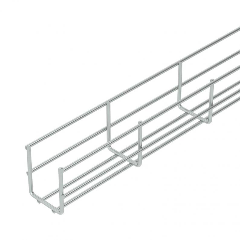 Mesh cable tray made of spot-welded steel wire of side height 55 mm.