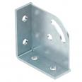 Reinforced mounting bracket with 6 holes to connect profile rails 41 x 41 mm and 41 x 21 mm at an angle of 90°. Additional fastening option for a strut at an angle of 45° with an adjusting range of +/- 30°. Can be used for angles between 15° and 75°.