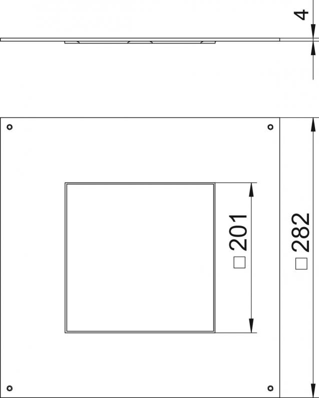Mounting lid for underfloor junction and branch box of type UZD250-3/4 for the installation of an installation unit of nominal size 4. Installation opening 3 mm recessed for later blanking lock with lid blind plate.