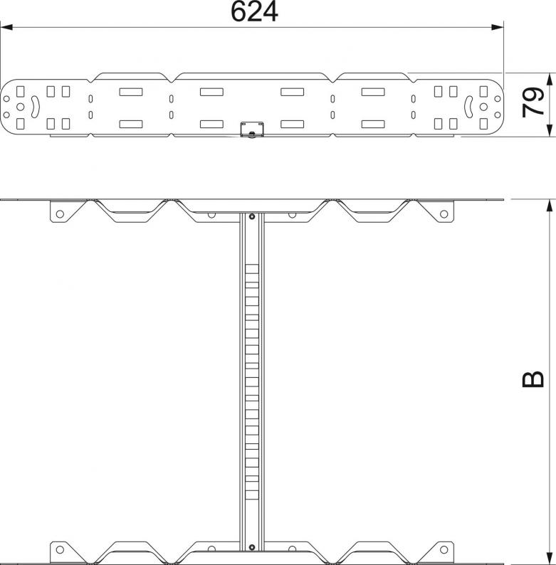 Multifunctional connector for joining cable ladders with a side height of 75 mm. Symmetrical and asymmetrical reductions, infinitely-adjustable bends between 0–60° and add-on tees can be created.