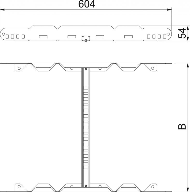 Multifunctional connector for joining cable ladders with a side height of 50 mm. Symmetrical and asymmetrical reductions, infinitely-adjustable bends between 0–60° and add-on tees can be created.