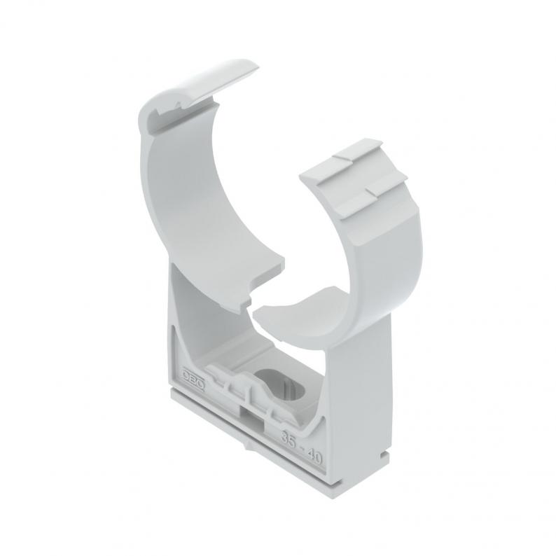 Highly stressable clip for accepting plastic or metal electrical and sanitary pipes as well as the electrical installation pipe Quick pipe. Universal fastening options on walls, ceilings and steel constructions, both indoors and outdoors. Flexible clamping range of several millimetres. Toolless pipe mounting. Connectable to each other to Ø 32 mm, also with the OBO Quick or Multi Quick clip. For variable distances and clip quantity mountable on a profile rail.