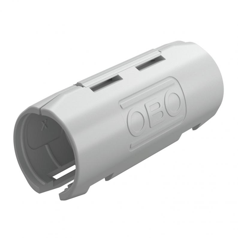 Connection sleeve for plastic electrical installation pipes to create straight connections. Suitable for Quick pipe pipes or corrugated pipes. Toolless closing and opening. Can be used in a temperature range of –25 to +60 °C.
