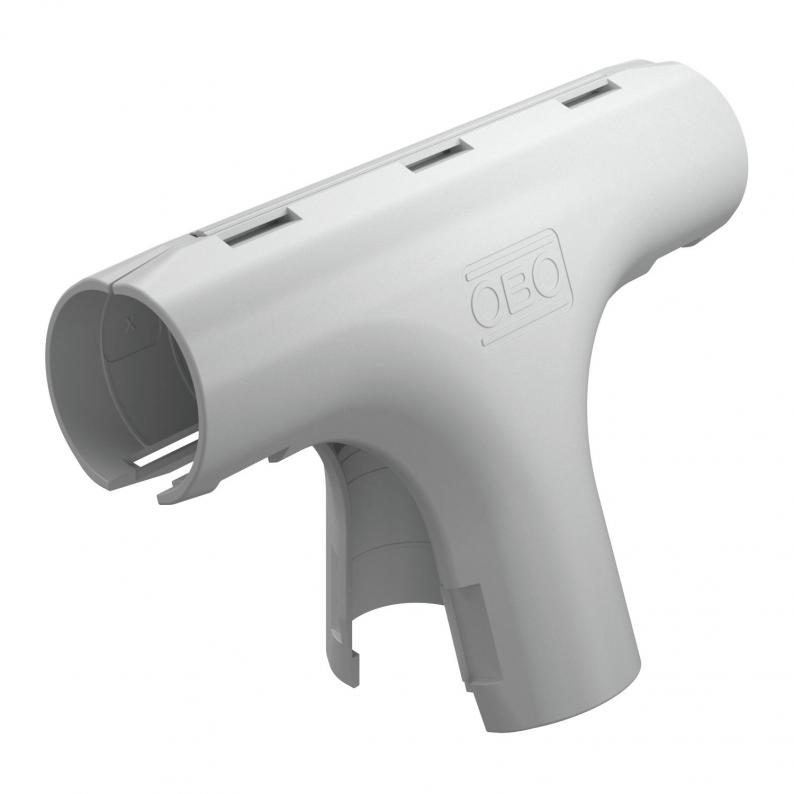 Fitting for plastic electrical installation pipes to create T branches. Suitable for Quick pipe pipes or corrugated pipes. Toolless closing and opening. Can be used in a temperature range of –25 to +60 °C.