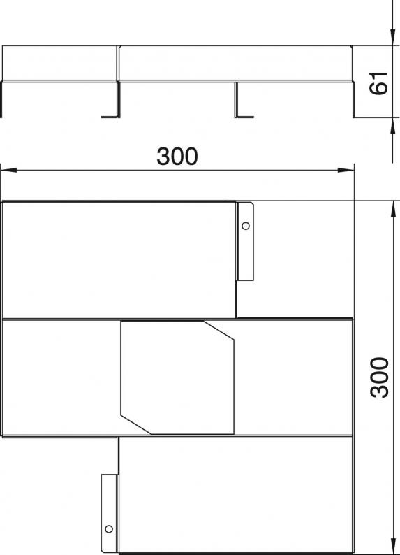 Separating element, three-compartment, for intersections in a UZD350-3 or UGD350-3 underfloor box, for branching-off ducts with a width of 350 mm.