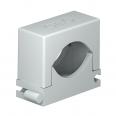 Universal clip for the single fastening of cables and pipes, all sizes can be seamlessly expanded among each other, with adhesive foot, slot and for screwing to M6 thread.