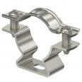 Spacer clip for the installation of pipes and cables on walls, ceilings and floors. With self-locking cover. Fastening via slot.