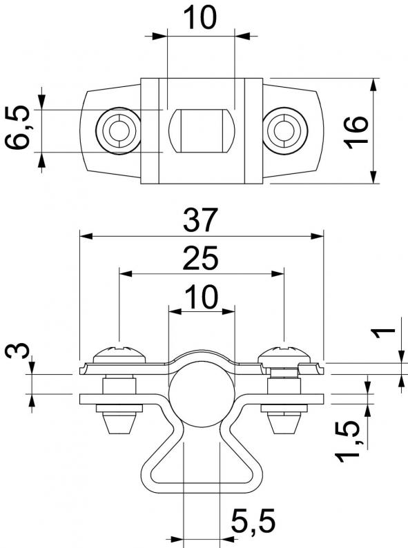 Spacer clip for the installation of pipes and cables on walls, ceilings and floors. With self-locking cover. Fastening via slot.