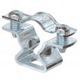 Spacer clip for the installation of pipes and cables on walls, ceilings and floors. With self-locking cover. Fastening via slot.