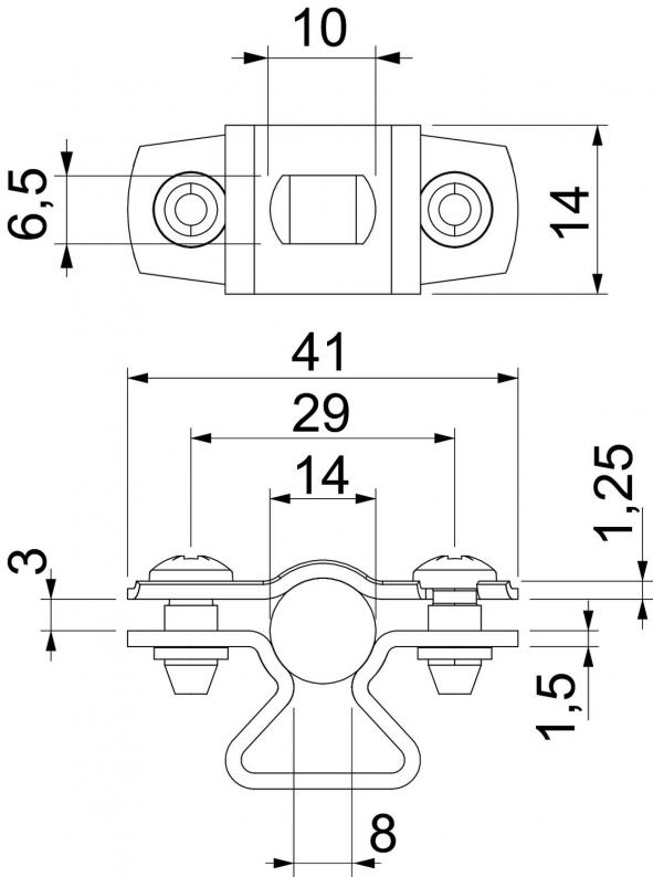 Spacer clip for the installation of pipes and cables on walls, ceilings and floors. With self-locking cover. Fastening via slot.