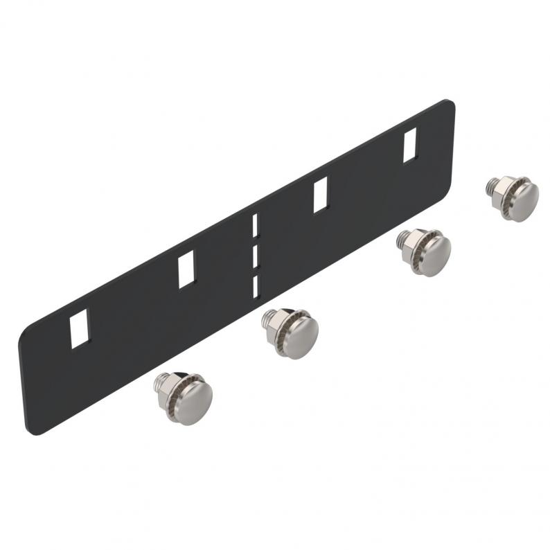 Straight and angle connector for horizontal changes of direction of cable trays, fittings and barrier strips.