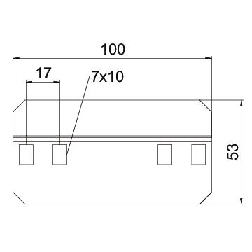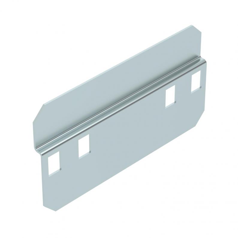 Straight connector for connections of cable trays, fittings and barrier strips.
