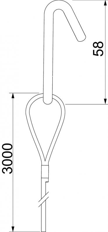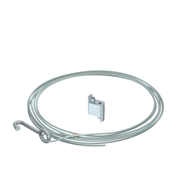 Support cable with trapezoidal plate hook for the suspension of different loads. Suitable for indoor use.