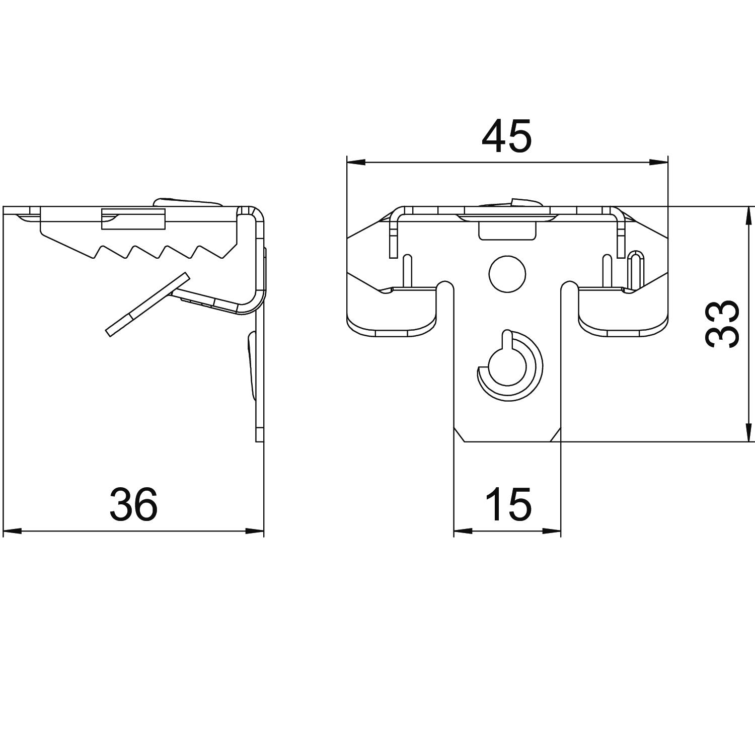 Support clamp with M6 female thread for individual mounting solutions. Fastening through knocking onto steel girders.
