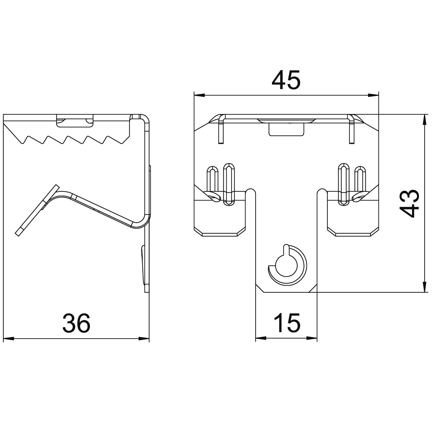 Support clamp with M6 female thread for individual mounting solutions. Fastening through knocking onto steel girders.