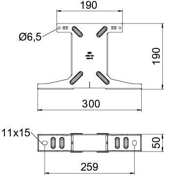 Base of the symmetrical floor support for the BKRS system, suitable for crossbeam type BSST 400/500/600. Can be used for walkable cable trays of width 400-600 mm. With threaded unions for mounting connection components, e.g. pipe clamps, as well as slots for floor mounting up to M10. Fastening material must be ordered separately.