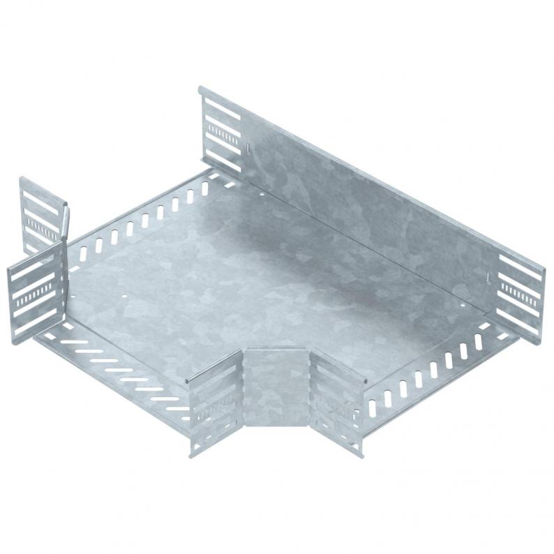 T piece for the creation of a horizontal branch, fitting for lock and screw-on cable trays of side height 110 mm. Screwless mounting with double clamps or screw connection with FRS truss-head screws and M6 combination nuts. Can be used indoors and outdoors. Fastening material must be ordered separately.
