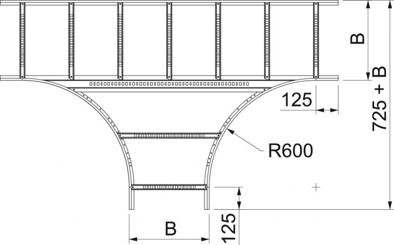 T piece, horizontal, with intelligent VS rung, for all cable ladder types of 75 mm side height.