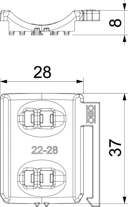 Regardless of the type of rail, the counter-trough can be used by applying it onto one side of the clamp clip. Due to an intelligent contour on the backside, the counter-trough can be combined to a double trough. Retrofitting possible without the need to dismantle.