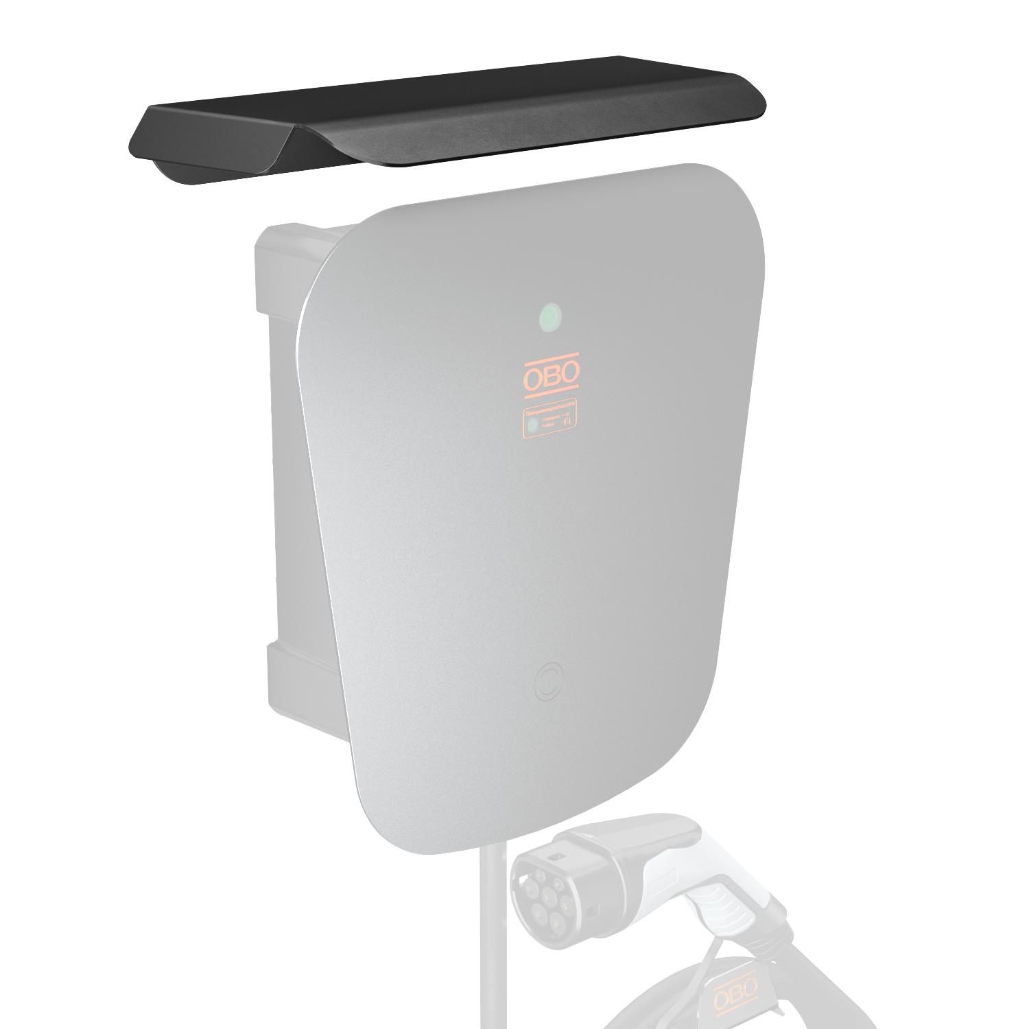 Weather protection roof for the Ion charging stations Basic Protect and Key Protect when mounted outdoors, pressure balance plug and mountig kit for brickwalls included.