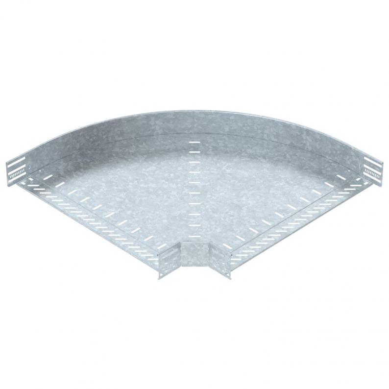 90° bend for the creation of a horizontal branch, fitting for lock and screw-on cable trays of side height 85 mm. Screwless mounting with double clamps or screw connection with FRS truss-head screws and M6 combination nuts. Can be used indoors and outdoors. Fastening material must be ordered separately.