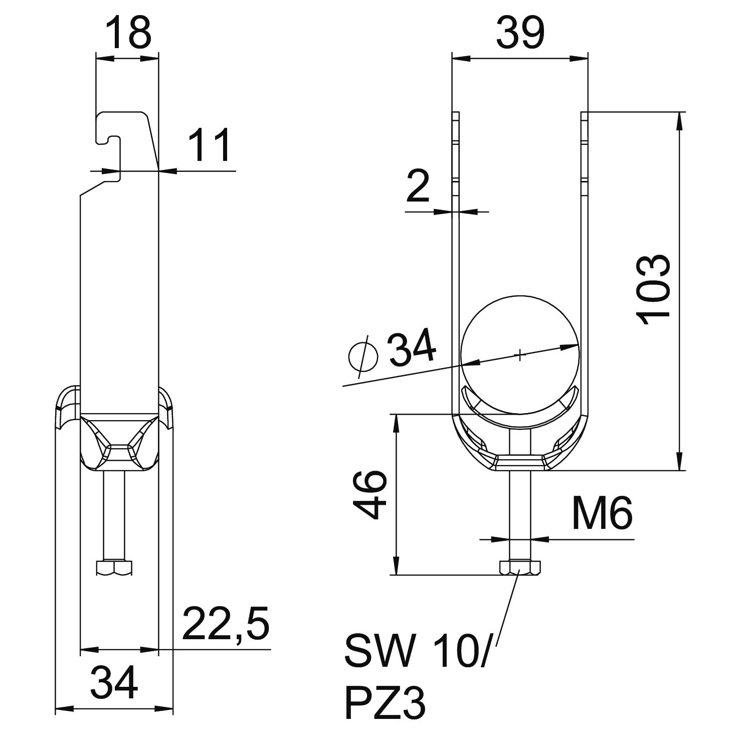 | Clamping range D, max. | 34 mm |