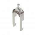 Clamp clip with W-foot, metal pressure sleeve with rounded edges to protect the cable. For vertical and horizontal mounting of 1 single cable on angle irons with shaft length 40 mm. With 1-start screw thread on pressure sleeve, universal hexagonal screw head WAF10, with slot and cross recess. Suitable for assembly indoors and outdoors. We recommend the use of a counter-sleeve.