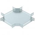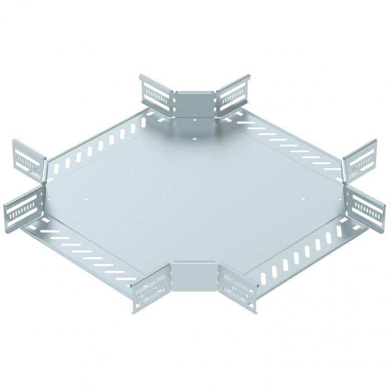 Cross-over for the creation of a horizontal branch, fitting for lock and screw-on cable trays of side height 60 mm. Screwless mounting with double clamps or screw connection with FRS truss-head screws and M6 combination nuts. Can be used in indoor areas. Fastening material must be ordered separately.