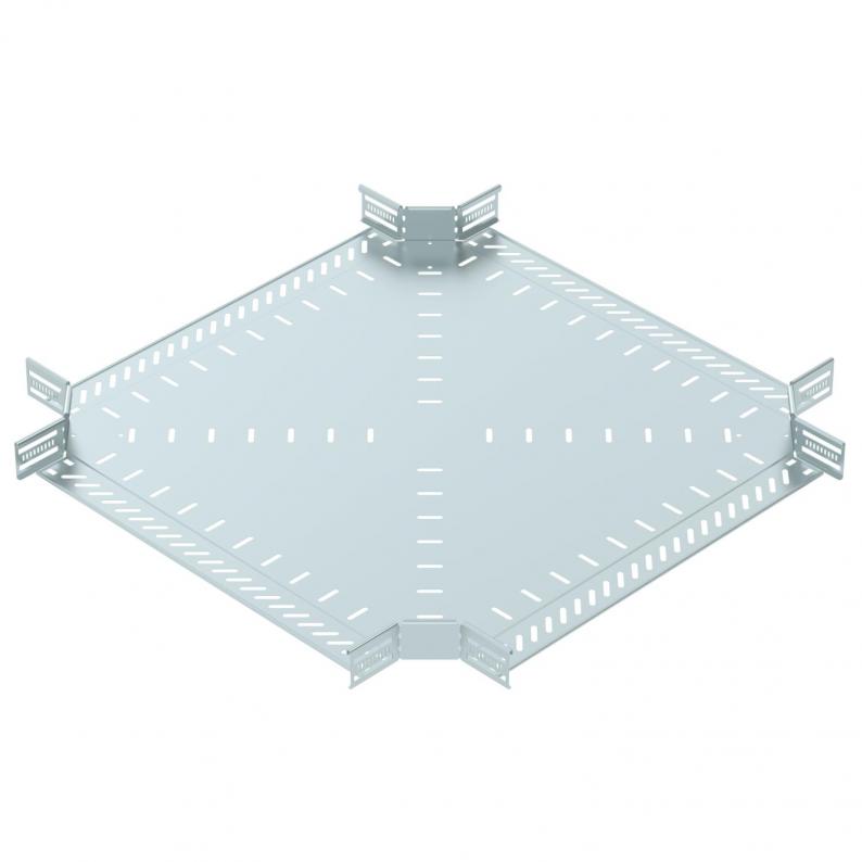 Cross-over for the creation of a horizontal branch, fitting for lock and screw-on cable trays of side height 60 mm. Screwless mounting with double clamps or screw connection with FRS truss-head screws and M6 combination nuts. Can be used in indoor areas. Fastening material must be ordered separately.