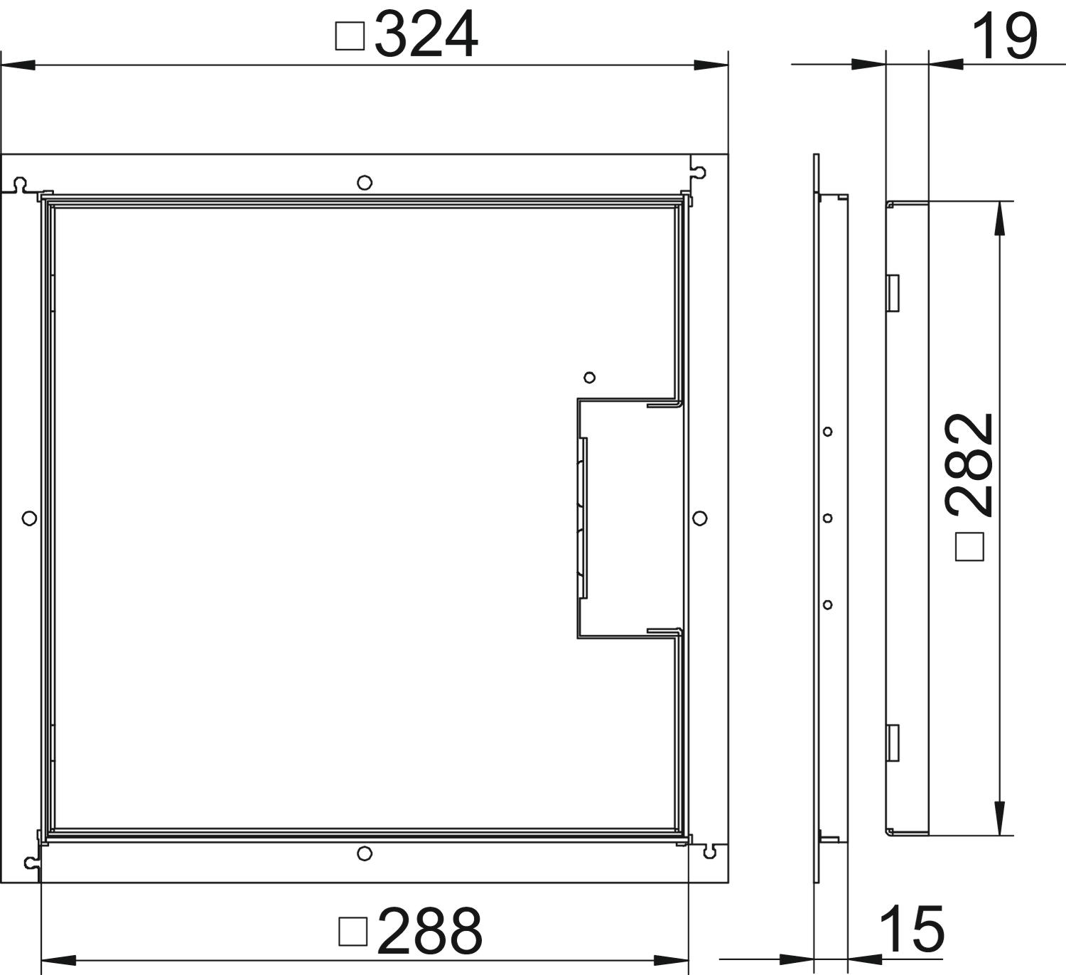 Frame cassette for cord outlet, RKS, nominal size 250-3, stainless steel