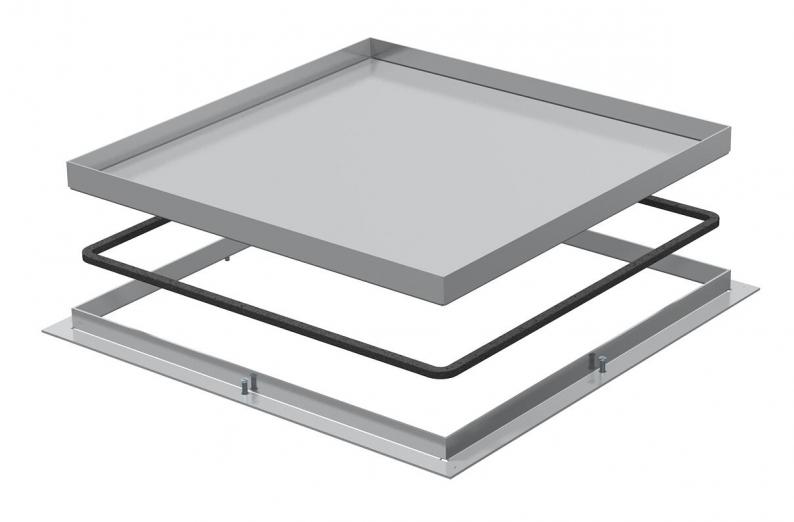 "Blank" frame cassette for the creation of an inspection opening in the UZD350-3 in dry or wet-cleaned floors for indoor use. Only suitable for smooth floor coverings.