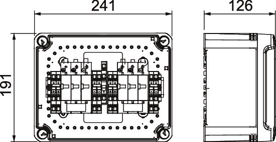 • 2 protection devices with 5 push-in terminals each of up to 6 mm² pre-installed in the housing, up to 41 A DC per terminal